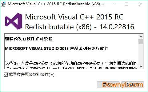 这里要提醒一点,之前安装失败的,一定要先运行visualc++redistributableforvisualstudio2015把失败的卸载干净,然后再重新打开安装即可。