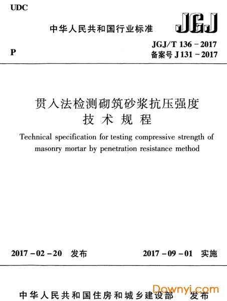 jgj/t136-2017贯入法检测砌筑砂浆抗压强度技术规程 8.54 MB