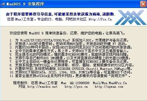 maxdos9最新版 硬盘版 v9.0Maxdos9为需要的用户带来强大的系统备份和恢复功能,不仅支持多种操作系统,而且操作简单,使用方便。一键式操作,内含大量驱动,有了这款软件就不用担心系统备份和还原了。有需要的朋友可以来PK游戏网下载使用~ 软件介绍: maxdos是一