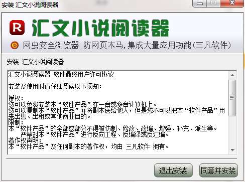 3.双击打开,进入汇文小说阅读器软件界面,阅读安装许可协议,点击我同意安装