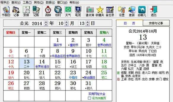 软件集成了世界时间、闹钟定时提醒、通讯簿、网络校时、语音报时、收藏夹、天气预报、文件保险箱等实用工具,此外它可以将生日等纪念日、每日记事、日程安排等添加到万年历中,还可对吉日、记事进行搜索与查看,并可以最小化或自动隐藏显示当日公农历及时间。
