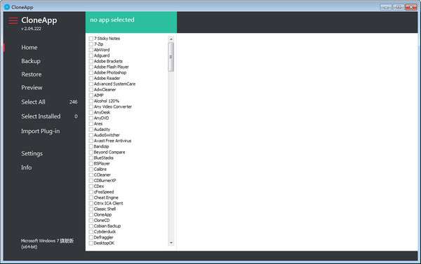 CloneApp旧版 ,CloneApp旧版是一款来自国外的系统软件配置备份工具,能够备份Windows中和所有应用设置,包括与应用关联的注册表中的数据,在软件出现故障或重装系统后,一键还原原系统中的软件配置!