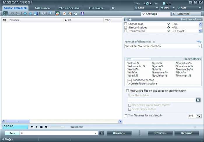 TagScanner旧版 ,TagScanner破解版是一款非常好用的MP3标签添加、修改软件,小编一直都在使用它,拥有它你能够轻松修改歌曲中的标题、艺术家、所属专辑、年代、流派、标注、作曲作家...等非常详细的信息,并且支持用户从在线数据源中获取歌曲信息。