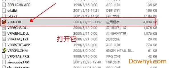 2、下载解压后找到visualfoxprov6.0文件夹,点进去双击vfp6.exe,即可打开,如图: