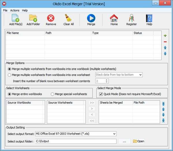 Okdo ,Okdo Excel Merger旧版是款高效专业且深受用户喜爱的Excel文件合并软件,Okdo Excel Merger正式版可以轻松的帮用户用来合并多个多个Excel工作表到一个新的工作表或合并的Excel文件合并成一个新的工作簿中。且还可以允许用户合并了一批excel文件,并结合指定的Excel工作表一起。