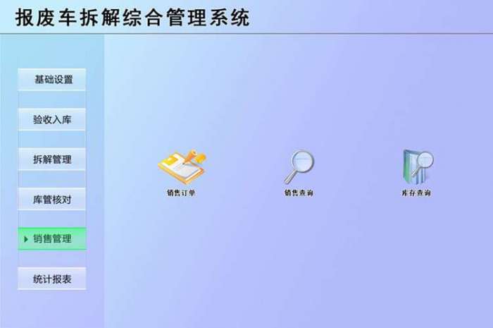 《报废车拆解综合管理系统》适用报废车回收与拆解企业的管理软件。主要包含验收入库、拆解管理、销售管理等功能。本管理系统多处具有快速辅助录入功能,操作简单,易学、易用;处理功能高效强大,是协助您的好帮手!