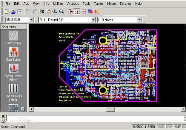 注:用此方法做好线路后,一定要用命令将多个层面合成Utilities-->Convert Composite 的一个复合层转换成一个层面,然后将此层和原稿用Anglysis-->Compare Layers 命令进行仔细核对。