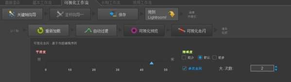 1、我们首先点击可视化去闪,在窗口中选择我们的去闪程度;