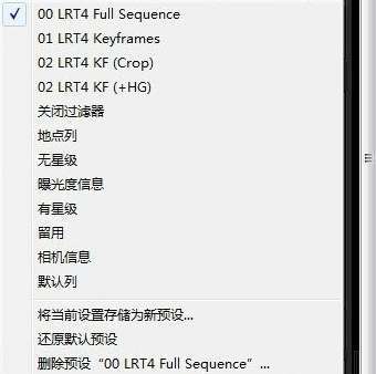 1、打开LRT,选择你要处理的照片系列,LRT会自动读入,并问是否生成生成初始XMP,回答Yes,并等待预览结束。 然后,生成几个关键帧,一般选首、尾。对于黄昏等过渡系列,可以在中间位置再选一个关键帧,最后按保存XMP按钮,LTR不要关闭。打开(LR),导入同一照片系列。等待LR把预览处理完,然后选择所有照片(Ctrl-A),读入metadata(菜单或照片上点右键),等待进度条完成。 LR导入图片有可能无预览,这是文件名和路径里有了中文名,或者RAW文件不支持预览,或者内存不够。前者改个名字重新建立Catalogue,后者需要一个免费的DNG转换器,把RAW文件转成DNG文件后再处理;
