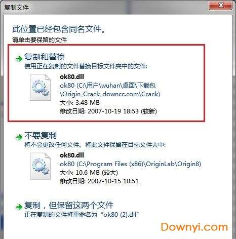 2、将“ok80.dll”复制到软件安装目录下覆盖(C:Program FilesOriginLabOrigin8)