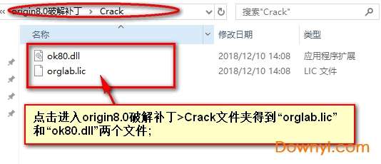 1、开始修改,打开解压后的文件,点击进入origin8.0修改补丁/Crack得到“orglab.lic”和“ok80.dll”两个文件;