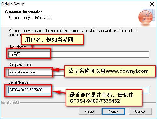 6.输入用户名pk游戏网为以及单位名称www.downyi.com,还有注册码为:GF3S4-9489-7335432,然后点击“next”,点击下一步