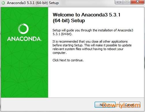 2、点击下载的安装包Anaconda3-5.3.1-Windows-x86_64.exe安装exe文件