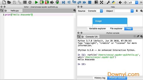 按enter键时,程序将运行。“hello anaconda!”字样打印到屏幕上。你是用python编程的!