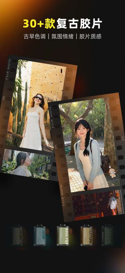 4、提供多款复古滤镜模拟真实胶片色彩,还原经典机型拍摄效果。