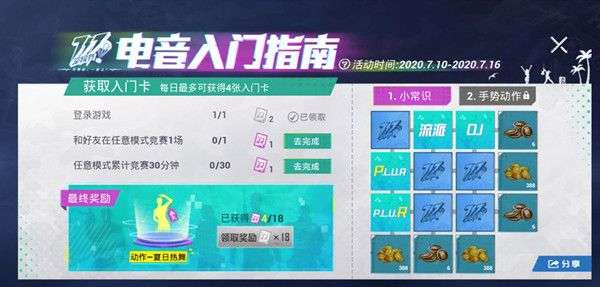 和平精英电音入门指南活动开启,夏日热舞动作获取条件
