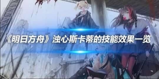 下面为大家介绍《明日方舟》的干员——浊心斯卡蒂的技能效果一览。作为游戏中的高级干员之一,浊心斯卡蒂的技能非常出色,可以在战斗中发挥重要作用。本文将详细介绍浊心斯卡蒂的技能,并且为大家带来一份完整的技能效果列表,让玩家们更好地了解和运用浊心斯卡蒂的能力。