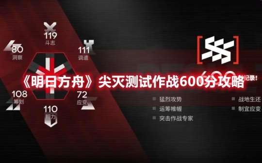 《明日方舟》尖灭测试作战600分攻略,让你轻松get高分!尖灭测试作战是《明日方舟》中难度非常高的活动玩法之一,想要拿到高分可不是那么简单的,需要有一定的策略和配合。接下来,将为大家详细介绍如何打出600分的攻略。