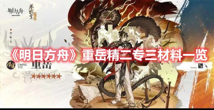 《明日方舟》重岳是游戏中的一个新角色,相信有很多玩家都对这个角色比较感兴趣,打算在获取之后直接培养起来,可能有玩家还不清楚这个角色的精二专三需要什么材料,下面小编就给大家整理了具体的材料一览,一起来看