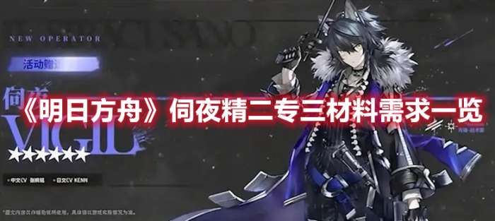 《明日方舟》伺夜是游戏中的新六星赠送干员,相信大家都是准备兑换获取的,可能有想要练这个干员的玩家还不知道伺夜的精二和专三需要消耗什么材料,下面小编就给大家整理了具体的材料需求一览,一起来看看吧!《明日