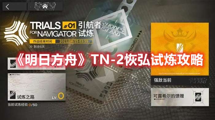 《明日方舟》TN-2恢弘试炼是游戏中的全新活动引航者试炼的第二关最高难度,在这个难度中玩家的挑战还是比较高的,可能有玩家还不知道这个试炼要怎么才能够通过,下面小编就给大家整理了具体的攻略,一起来看看吧!《