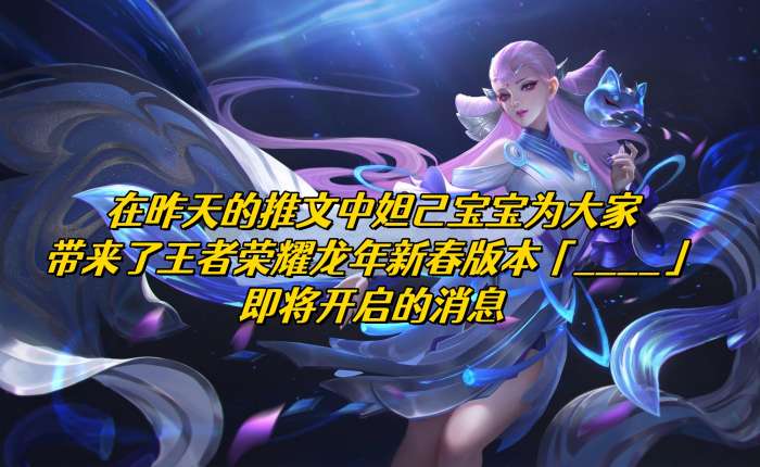在昨天的推文中,妲己宝宝为大家带来了王者荣耀龙年新春版本「____」即将开启的消息。并且提示是四个字,那么这个问题的答案是什么呢?这里小编为大家带来分享,看一下王者荣耀每日一题今日的答案分享。