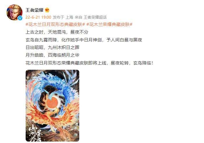 王者荣耀花木兰荣耀典藏值得兑换吗,最近官方公布了花木兰的典藏皮肤的宣传图,据说是双形态的造型,可以看到图中有两种属性的玄鸟,看着很玄乎的,具体特效后续可以看到,值得兑换吗。 王者荣耀花木兰荣耀典藏兑换建议 目前有博主爆料了出场动画,看着有