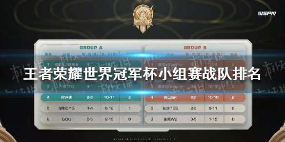 《王者荣耀》世界冠军杯小组赛战队排名 世冠小组赛积分排名