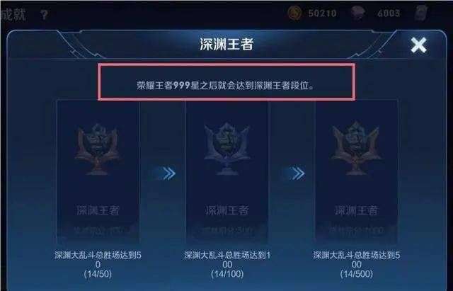 王者荣耀深渊王者段位什么样的 深渊王者段位是真的吗,王者荣耀深渊王者段位是啥,目前的话排位赛中荣耀王者是最高段位,达到荣耀王者之后,再上分就可以加星星了,不过这个深渊王者段位是真的吗。王者荣耀深渊王者段位介绍深渊王者:荣耀王者999星之后就会达到深渊王者段位。这个描述一个...