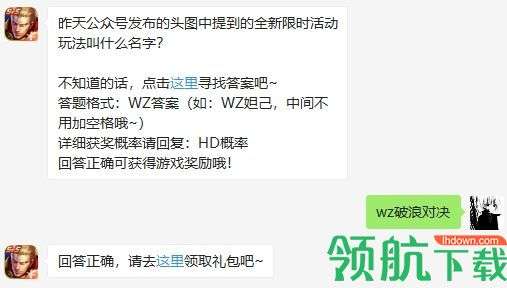 今天天天爱消除每日一答的题目是:昨天公众号发布的头图中提到的全新限时活动玩法叫什么,下面小编为大家带来今日份答案,每日持续更新,欢迎大家继续关注我们! 2020年王者荣耀7月28日微信每日一题问题 昨天公众号发布的头图中提到的全新限时活