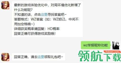 最新优化中对局环境优化新增了啥功能 2020王者荣耀7.3日答案