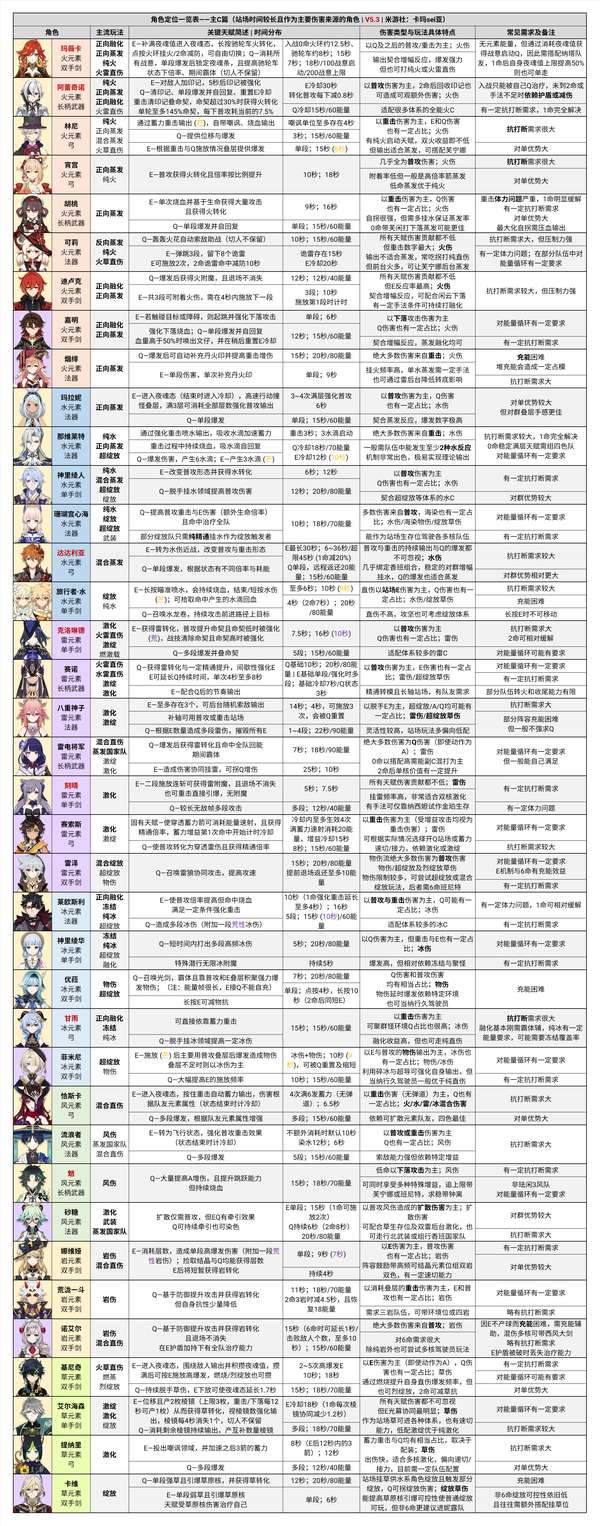 ① 修改了部分角色的定位描述,更新了部分武器与圣遗物的使用建议。② 在「辅助定位一览表」中新增了蓝砚的角色定位。