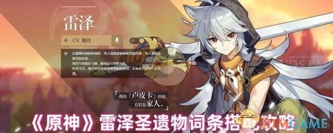 原神雷泽圣遗物怎么搭配,今天为大家带来的是原神雷泽圣遗物及词条的搭配攻略,对雷泽圣遗物怎么搭配还不了解的玩家们可以参考小编下方的搭配推荐,根据自己的战局来安排雷泽的圣遗物及词条。希望能对大家有所帮助。 突破材料 | 配队 | 天赋 |