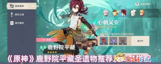 《原神》鹿野院平藏圣遗物推荐及词条搭配