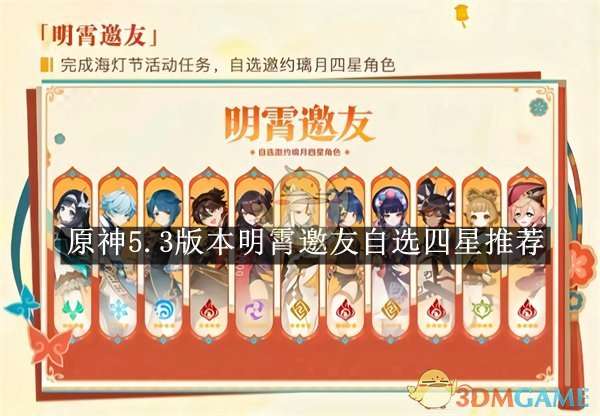 原神5.3版本璃月自选四星角色怎么选?原神5.3版本即将上线,游戏里还有很多游戏内容等着所有的游戏玩家下载解锁的,该游戏还提供了很多游戏角色,这些游戏角色有着不同的技能,今天小编为大家分享的是原神5.3版本璃月自选四星角色怎么选的详细介绍,