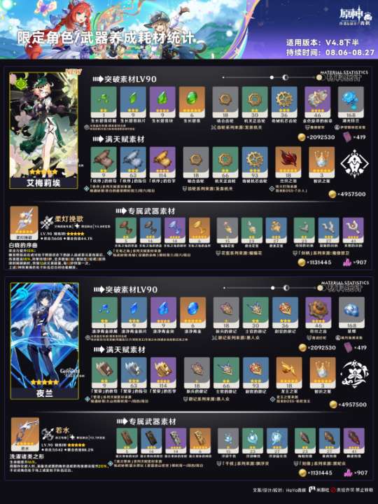 【原神】V4.8攻略 | 下半角色养成耗材统计