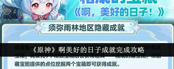 原神啊美好的日子成就怎么完成?游戏中有着多种场景可供玩家进行探索,其中还会给大家准备各种难度不同的游戏成就任务,玩家成功的完成游戏任务后可以获得大量的游戏奖励,小编也是给大家带来了原神啊美好的日子成就完成攻略。 《原神》啊美好的
