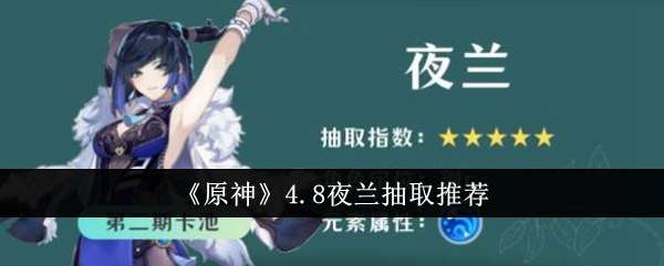 原神4.8夜兰值得抽吗?原神4.8版本的话很多人都看到要上这个夜兰了呢,那么要是想玩的话是需要自己去抽了,今天就给大家带来抽取的性价比分析了,这样平民玩家们就不要纠结了,那么大家要是好奇的话下面来看看吧! 《原神》4.8夜兰抽取