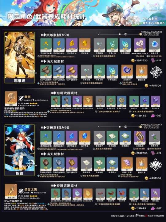 【原神】V4.8角色攻略 | 上半角色养成耗材统计
