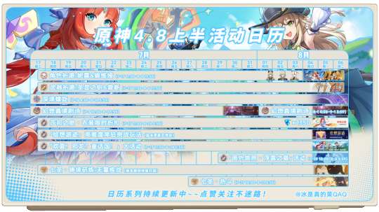 【原神】4.8上半活动日历一图流!重要活动时间尽在掌控!