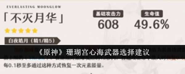 原神珊瑚宫心海武器怎么选?原神中珊瑚宫心海这个角色深受大家喜爱很多玩家不知道珊瑚宫心海武器该怎么选,今天小编就给大家打来珊瑚宫心海的武器选择推荐,让我们一起来看看吧。 《原神》珊瑚宫心海武器选择建议 1、不灭月华 不灭月