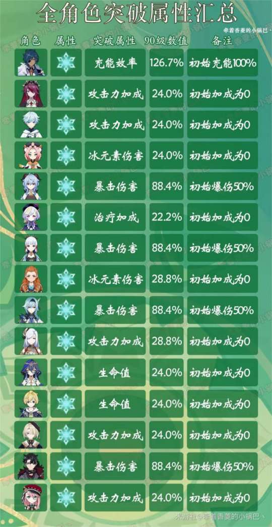 【原神】V4.7攻略 | 全角色突破属性汇总