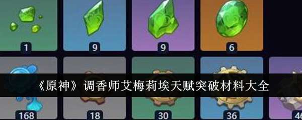 原神调香师艾梅莉埃天赋突破材料有哪些?原神里面的话一些玩家呢都想要调香师艾梅莉埃变得更加的厉害了呢,那么就可以去升级天赋了,调香师艾梅莉埃天赋升级的话也是需要用到一些突破材料的,知道了以后就可以去升级了,要是不会的话下面一起来看看吧!