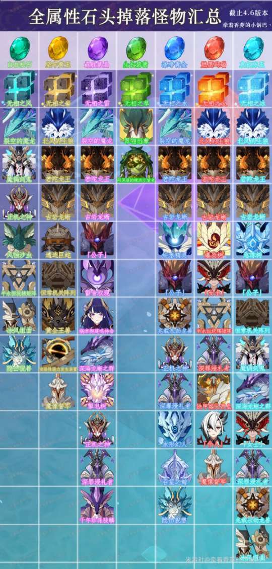 【原神】V4.6攻略 | 全属性石头掉落怪物汇总