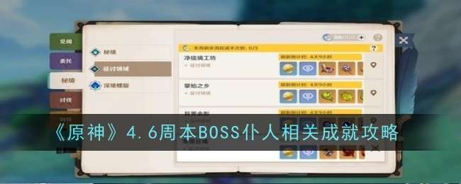 在《原神》全新4.6版本中新增了周本boss仆人,而在挑战仆人的过程中我们都可以获得哪些成就呢?下面小编就用详细的图文解说来给大家带来BOSS仆人相关成就都有什么以及完成方法。还没有完成成就的玩家快来看一下哪,希望以下攻略可以帮助大家完成成