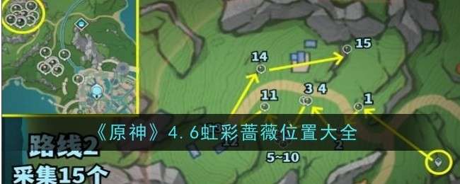 《原神》4.6虹彩蔷薇怎么采集,仆人阿蕾奇诺突破升级材料是需要收集虹彩蔷薇的,不少的人都不清楚采集虹彩蔷薇的地方,需要去找到采集路线图,下面就来介绍下原神4.6虹彩蔷薇位置在哪。 原神4.6虹彩蔷薇位置分享 1、大世界生长