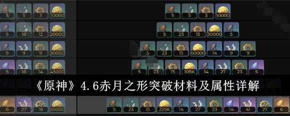 原神4.6赤月之形突破材料有哪些?原神4.6版本的话很多人都想培养下这个赤月之形了呢,那么要是想赤月之形变强的话是可以去升级下的,需要准备好这个突破材料才可以的,那么大家要是不会的话来看看吧! 《原神》4.6赤月之形突破材料及属