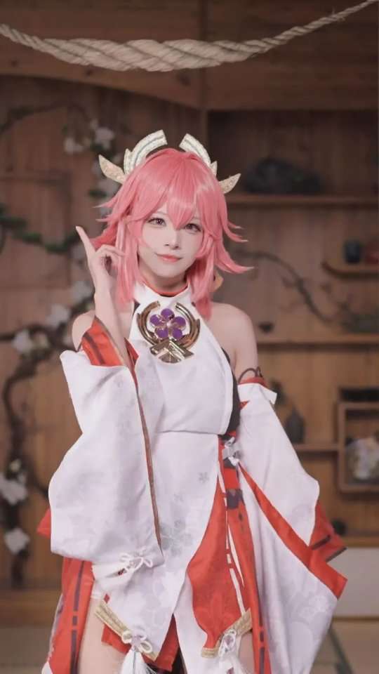 原神cos:河野华太漂亮了!八重神子皮肤真白,鸡翅膀女孩好好看!