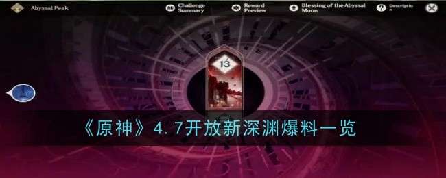 《原神》4.7开放新深渊是什么,马上4.6前瞻是会在4月12日上线的,还有就是在4月7日上线新地图和新深渊的,里面加入了挑战模式,打完奖励就可以获得600石头,下面就来介绍下原神4.7开放新深渊怎么打。 原神4.7开放新深渊是