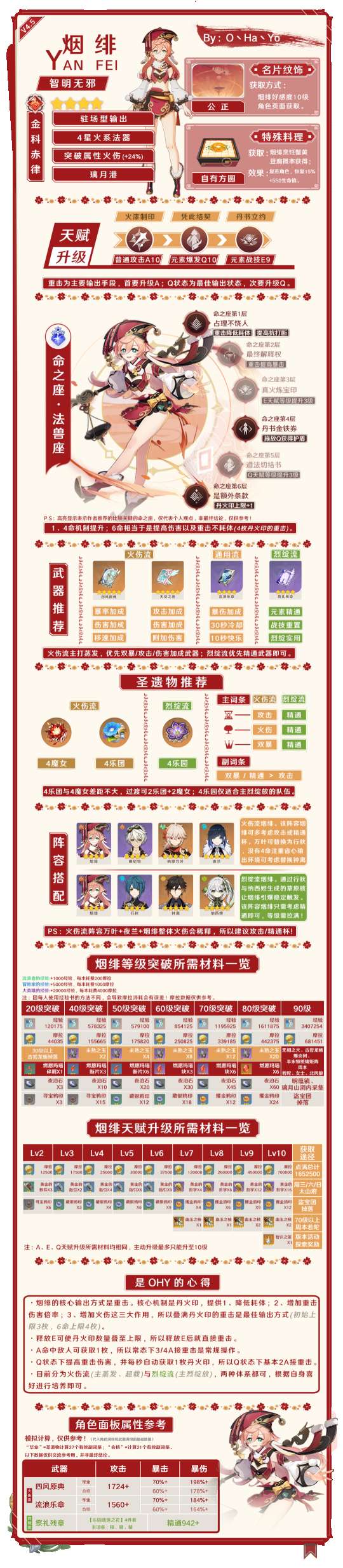 原神烟绯武器圣遗物配队一图流攻略,本期为大家带来烟绯的一图流攻略~